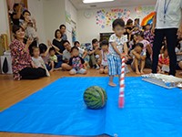 最後は子ども達チーム、お母さんチームお父さんチームに分かれてスイカ割を楽しんでいただき大盛況の夏祭りでした。