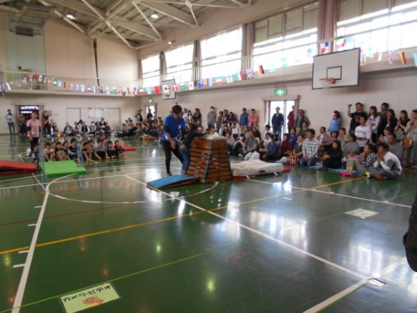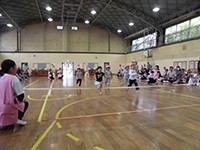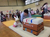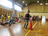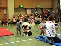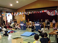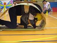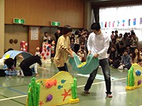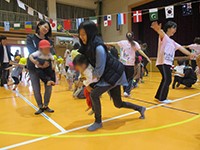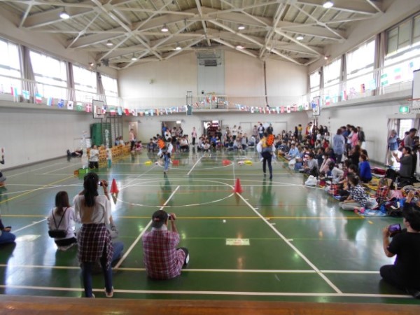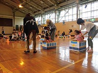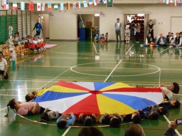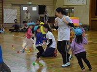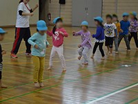 園の近くにあります公立小学校の体育館をお借りして、稲毛駅前園と合同で行いました。