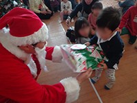 保護者参観を兼ねて行ったので朝の会をしてからウサギの原のクリスマス、サンサン体操のお遊戯をご披露して、その後サンタ登場!プレゼントを渡してもらい記念撮影をしました。朝からスタッフ一同で作ったお料理を食べてもらいました。
